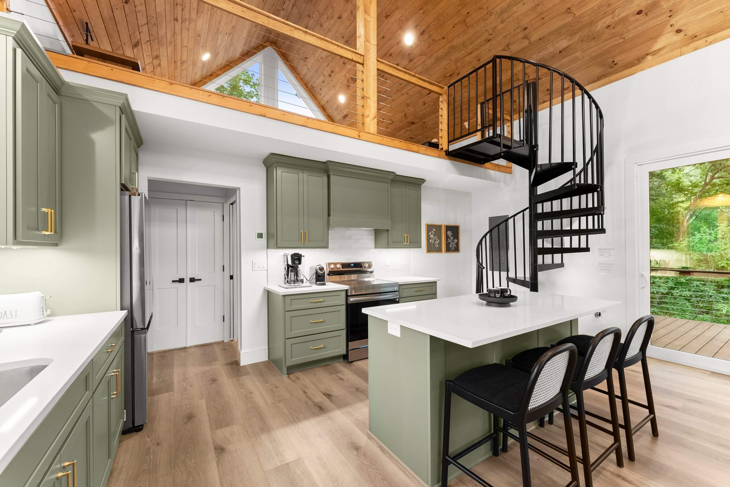 Enjoy seamless access to the outdoors with a wraparound porch, private hot tub, and fire pit, perfect for morning coffee, sunset views, and evenings under the stars.